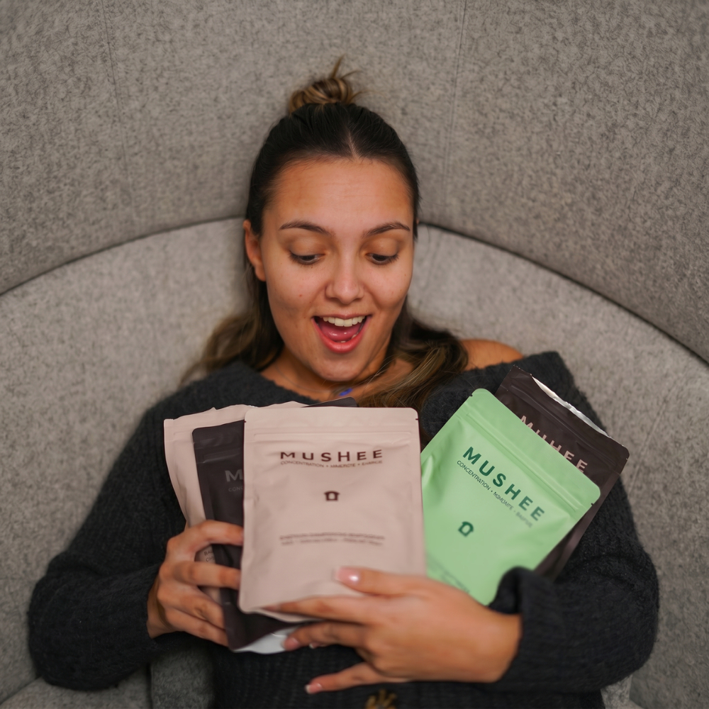 Mushee est une boisson douce, non stimulante, qui apporte une énergie stable tout au long de la journée. De nombreux clients témoignent d’une diminution des palpitations, d’un effet plus serein et d’une meilleure concentration, sans l’anxiété parfois associée au café classique.